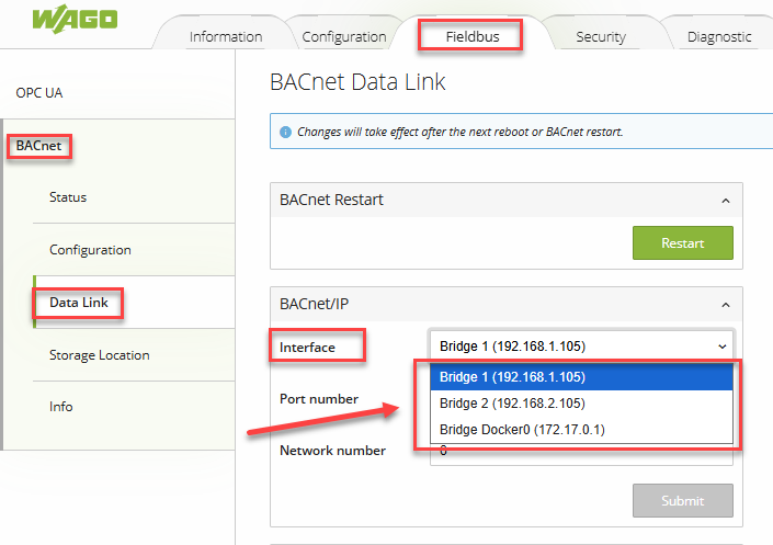 I have bacnet/ip running on this controller. The enet ports on the controller are set to separated. I can scan and discover the device on the wago bacnet configurator software when I look at port x1. When I look at port x2 I can’t discover the pfc200 on wago bacnet configurator. How do I enable port x2 to use bacnet? I can ping port x2 from the machine that I’m running wago bacnet configurator on.