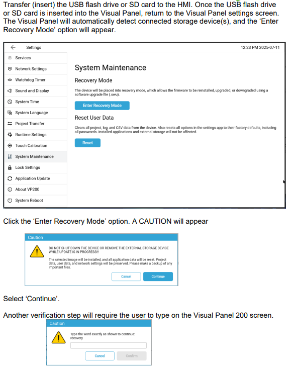 Updating FW on a VP200 Panel - Transfer using USB Flash / SD Card
